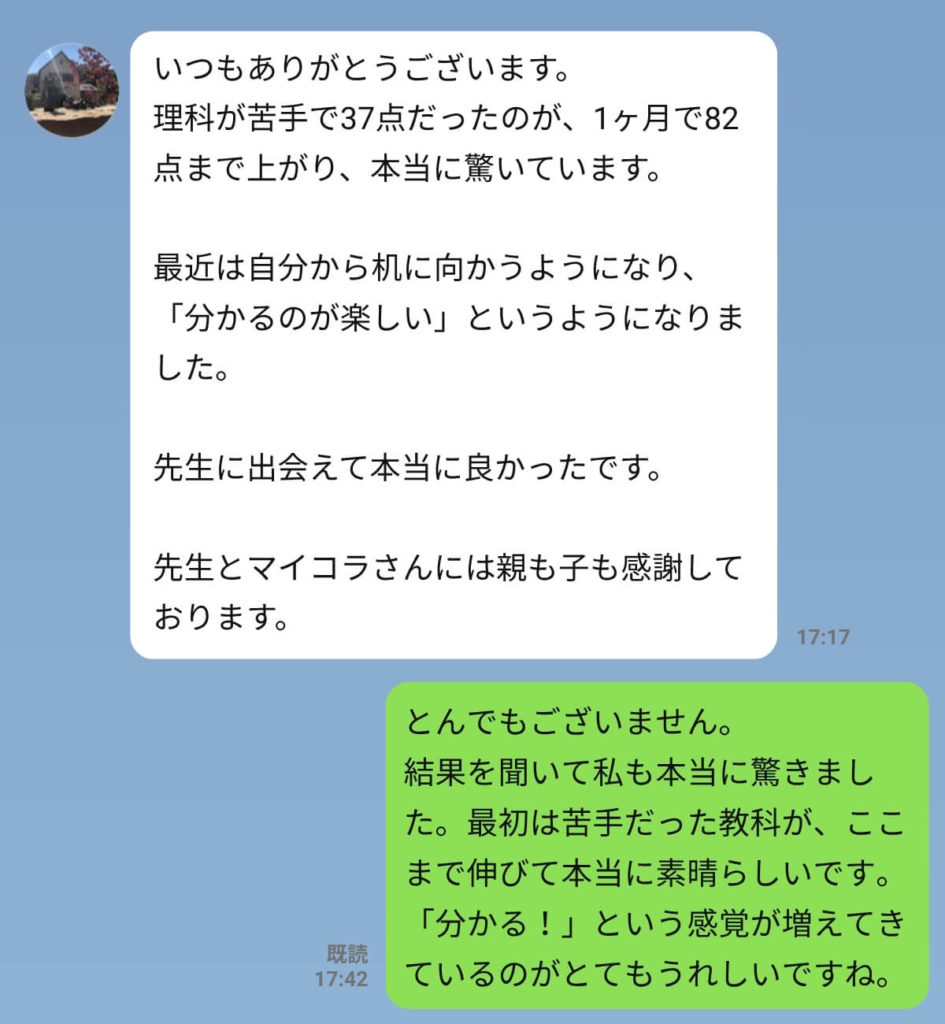 マイコラでは「戻り学習」と「ポイント学習」により、わからない原因から解決していくため、オンラインでもしっかり結果につなげていきます。