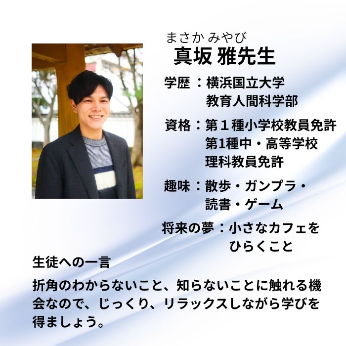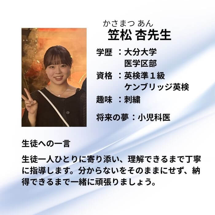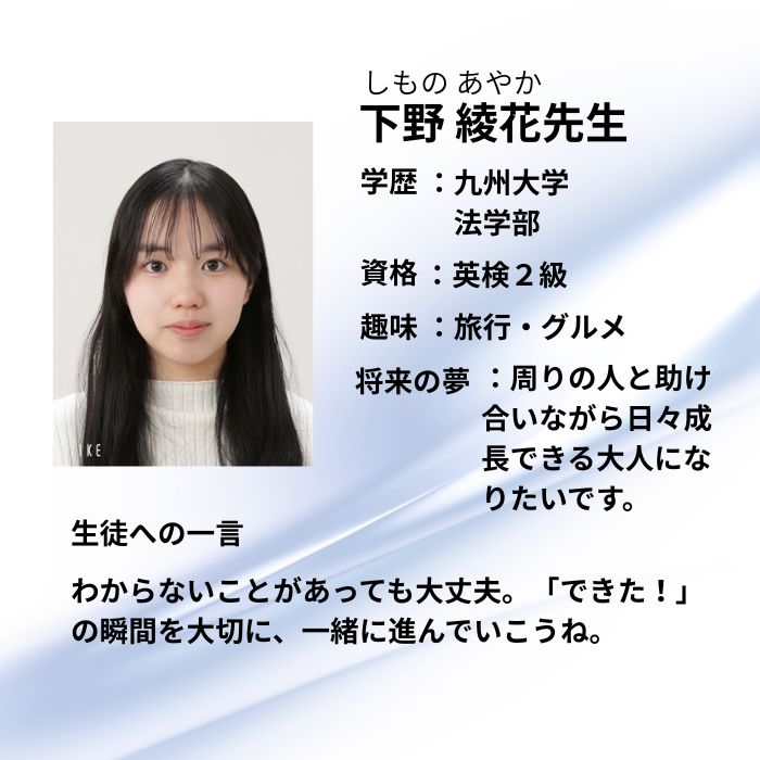 わからない部分をそのままにせず、基礎から丁寧に戻って指導するため、安心してお任せください。